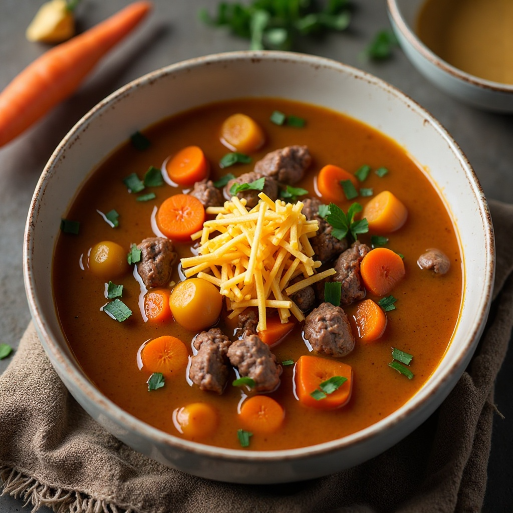 La sopa de carne es un plato tradicional que ha sido adaptado y enriquecido con los ingredientes locales de Alberta, reflejando su enfoque en la calidad de la carne y el respeto por los sabores naturales. Los trimmings al horno no solo son una forma económica de utilizar todo el ganado, sino también una tradición culinaria que celebra la creatividad en la cocina. En Alberta, este plato no solo es una comida reconfortante, sino también un símbolo de comunidad y tradición.