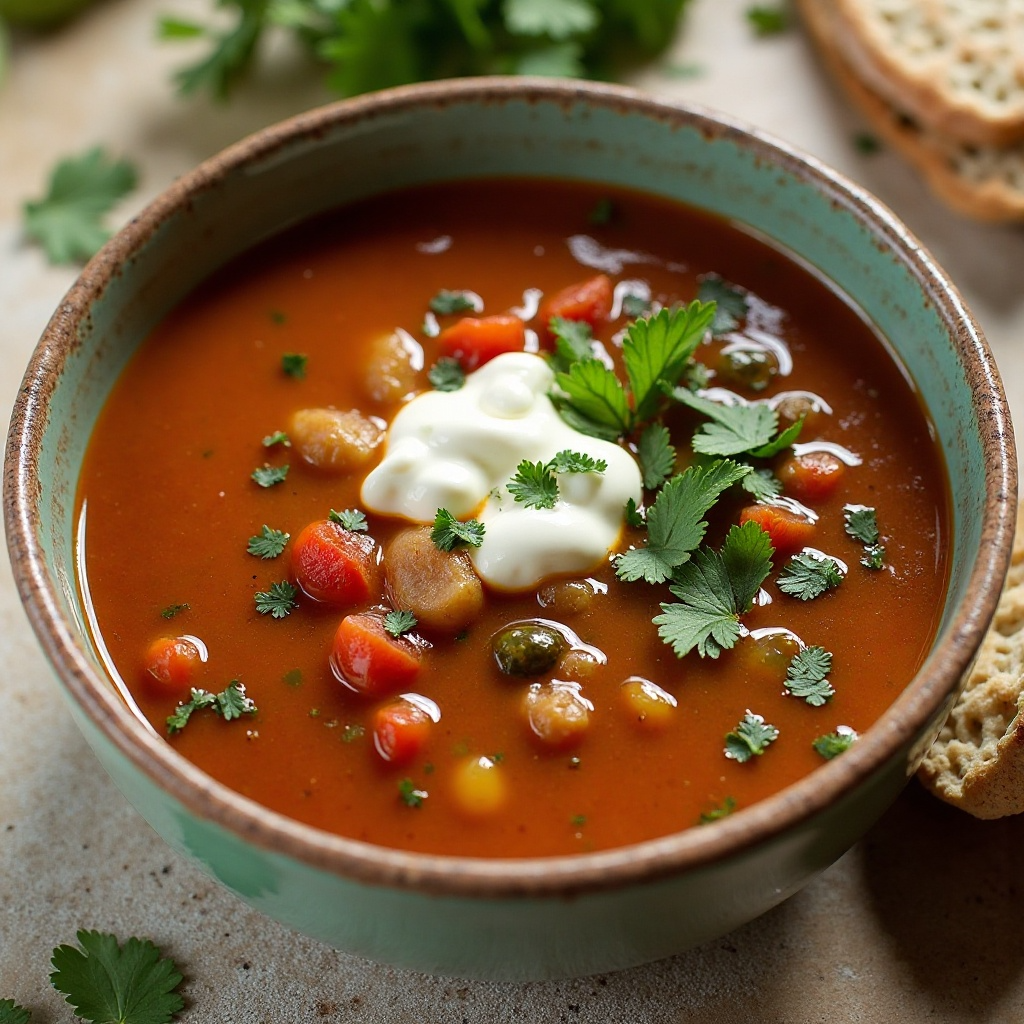 El Sopa de Chile es una opción saludable debido a su base de ingredientes frescos. Los chiles poblanos aportan capsaicina, conocida por sus beneficios para la salud, como reducir el colesterol. La crema agria introduce un toque rico sin agregar demasiada grasa, y el cilantro es una fuente natural de antioxidantes. Para quienes siguen dietas bajas en grasa, se puede optar por usar leche descremada en lugar de crema agria.