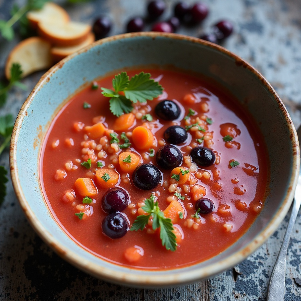 El chokecherry, o sarátaro, es una fruta silvestre amarga y potente que crece en la costa Este de los Estados Unidos. En esta receta, hemos creado una sopa ligera y refrescante que incorpora el chokecherry, perfecta para acompañar un partido de rugby al aire libre. ¿Listos para una experiencia culinaria con un toque salvaje? ¡Vamos!