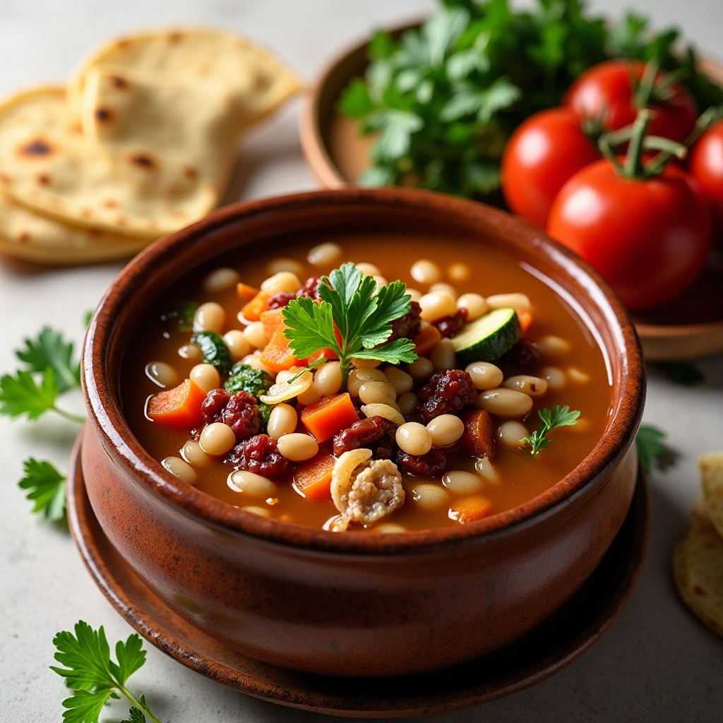 Este plato es nutritivo gracias a la presencia de frijoles, ricos en fibra y proteínas, y los vegetales aportan vitaminas y minerales esenciales. Para reducir las calorías, considera usar menos aceite de oliva o usar una alternativa más saludable. Además, el uso de caldo de pollo en lugar de agua puede aportar beneficios adicionales de colágeno.