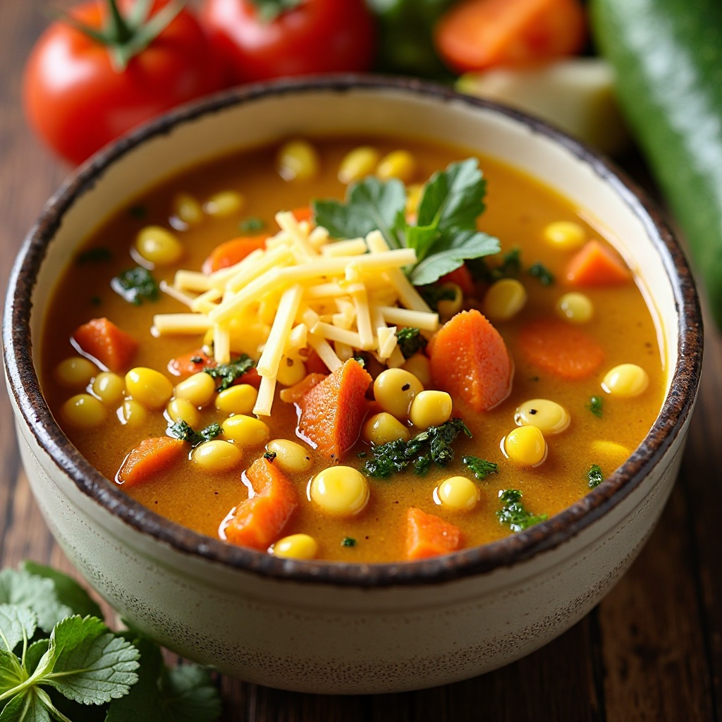 Esta receta es una celebración del maíz, un ingrediente central en la cultura y la historia de Iowa. La sopa es una opción reconfortante y nutritiva que utiliza el maíz de la región, complementado con verduras frescas típicas de las granjas norteamericanas. Ideal para compartir en reuniones familiares o como plato principal en días fríos.