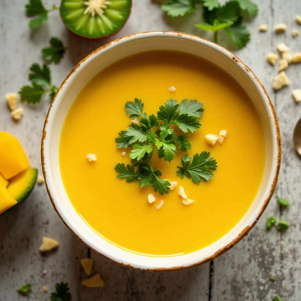 El mango es una fruta rica en vitaminas A y C, conocida por sus propiedades antioxidantes. La leche de coco, además de ser deliciosa, aporta grasas saludables. Esta sopa es ligera y perfecta para mantenerse hidratado sin llenar el estómago, ideal para climas cálidos.