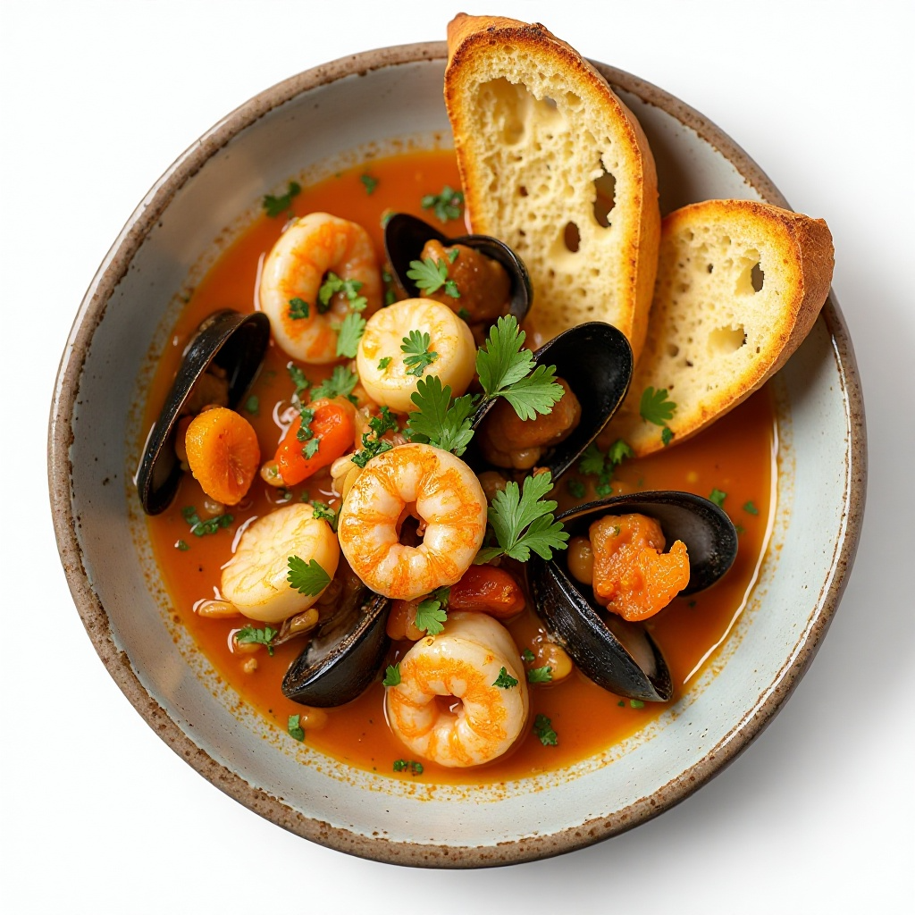 - Agrega los mejillones, los camarones y las vieiras al caldo. Cocina a fuego medio hasta que los mariscos estén cocidos (aproximadamente 5-7 minutos).