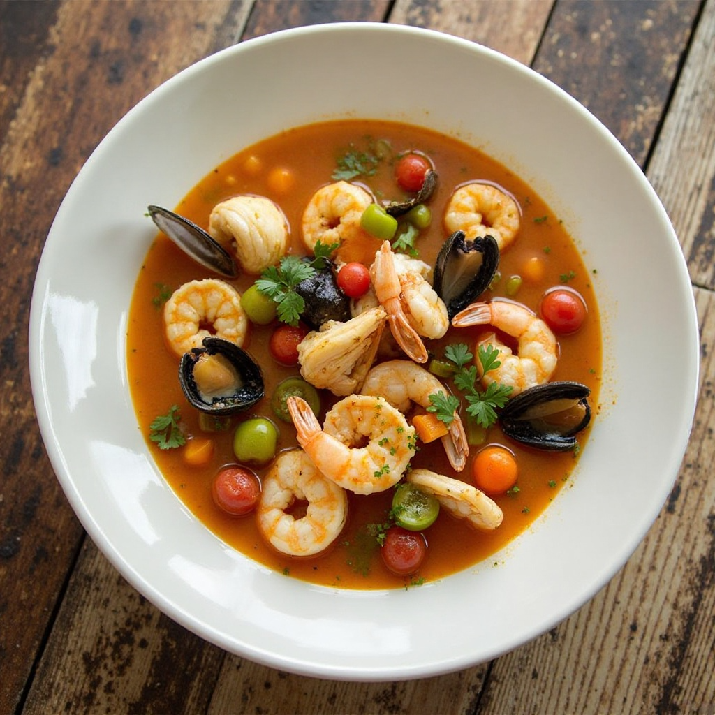 - Sirve la sopa caliente, asegurándote de que cada porción tenga una buena representación de mariscos y vegetales.