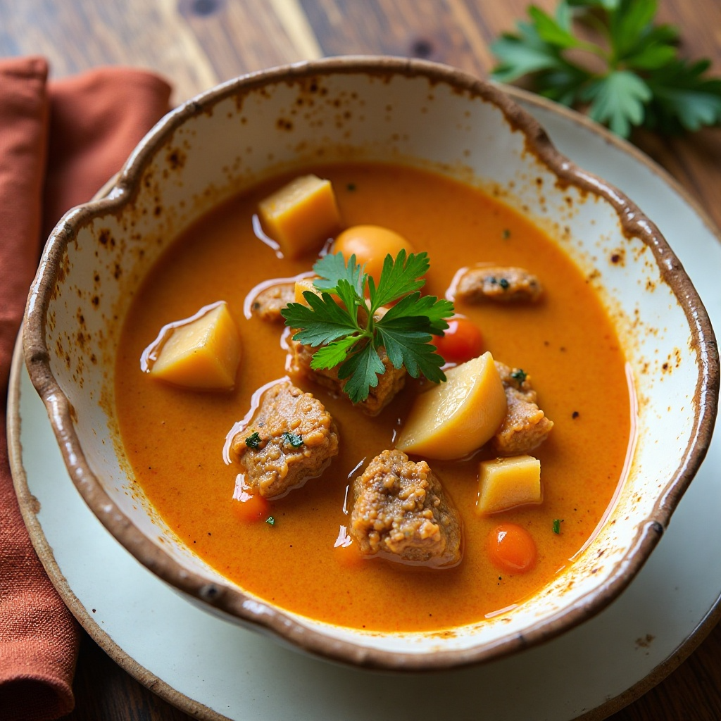 El matapa es una masa espesa y cremosa tradicionalmente hecha de mandioca (yuca) en Mozambique, y es un ingrediente clave en muchas recetas locales. Esta receta innovadora combina los sabores del matapa con carne de Xai-Xai, típica de la región, creando una sopa deliciosa que destaca por su textura cremosa y rica en sabores africanos. Perfecto para disfrutar de un banquete culinario que celebra la diversidad de Mozambique.