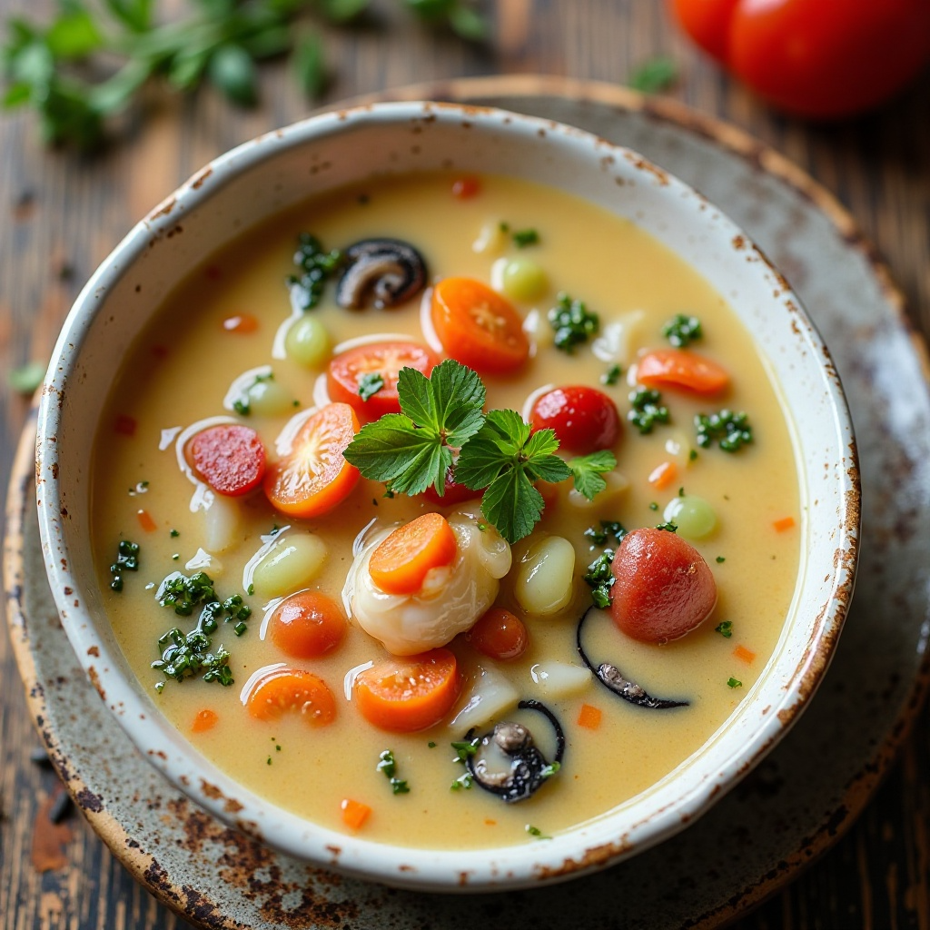 La Isla del Príncipe Eduardo es conocida internacionalmente por su excelencia en la cría de ostras, una tradición arraigada en la isla desde hace décadas. Esta receta captura la esencia de los sabores locales utilizando ingredientes frescos y sostenibles. La sopa se disfruta tanto como parte de la cultura culinaria local como un platillo gourmet en establecimientos especializados en todo Canadá.