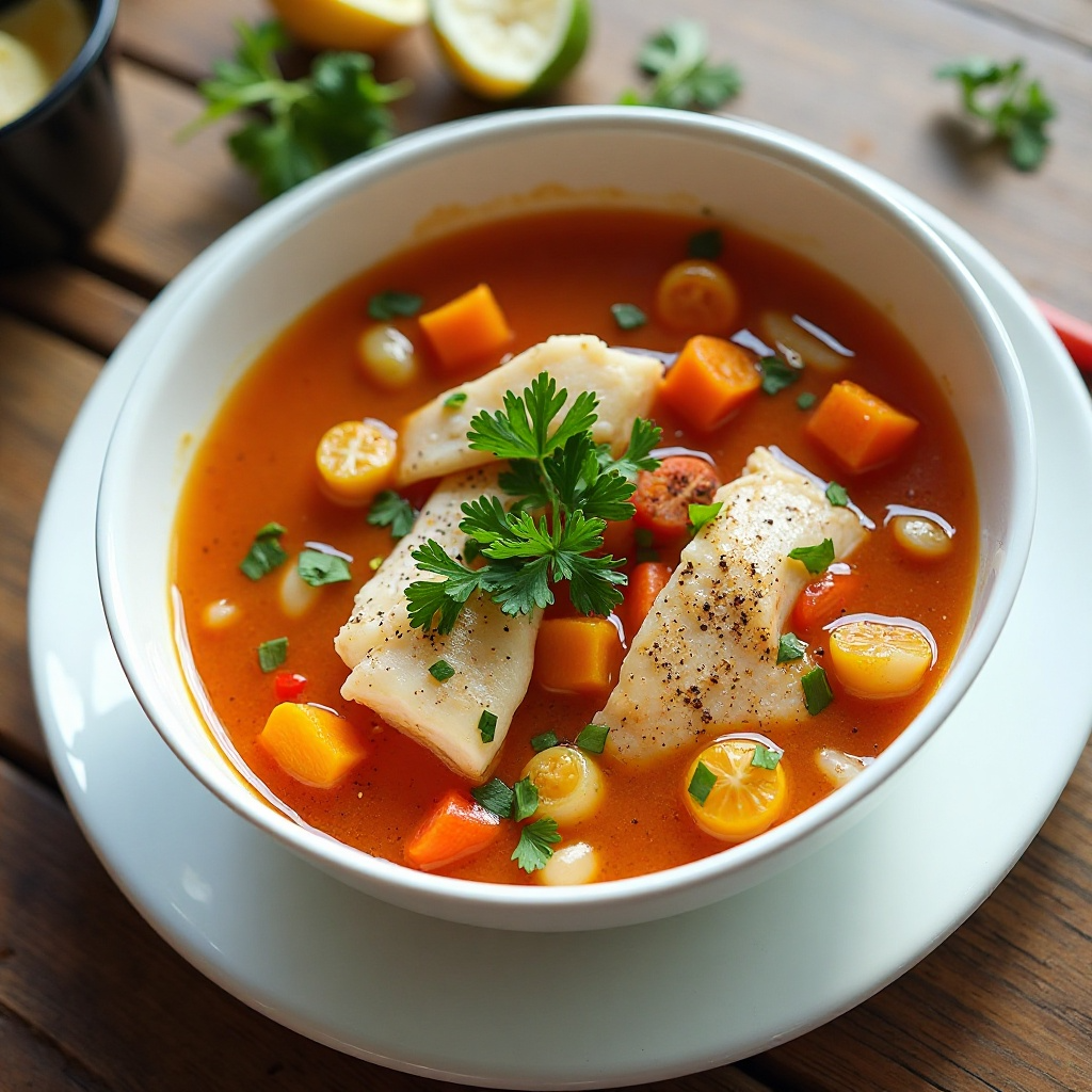 El Sopa de Pescado al Style de Lanciano es una versión ligera y delicada del famoso Brodetto alla Lancianese, un plato marino típico de la región de Calabria en Italia. Esta receta está inspirada en los sabores locales y utiliza ingredientes frescos para capturar el espíritu del mar en cada cucharada. Ideal para disfrutar en cualquier momento del año, este caldo es perfecto para aquellos que buscan una comida reconfortante y llena de sabor.