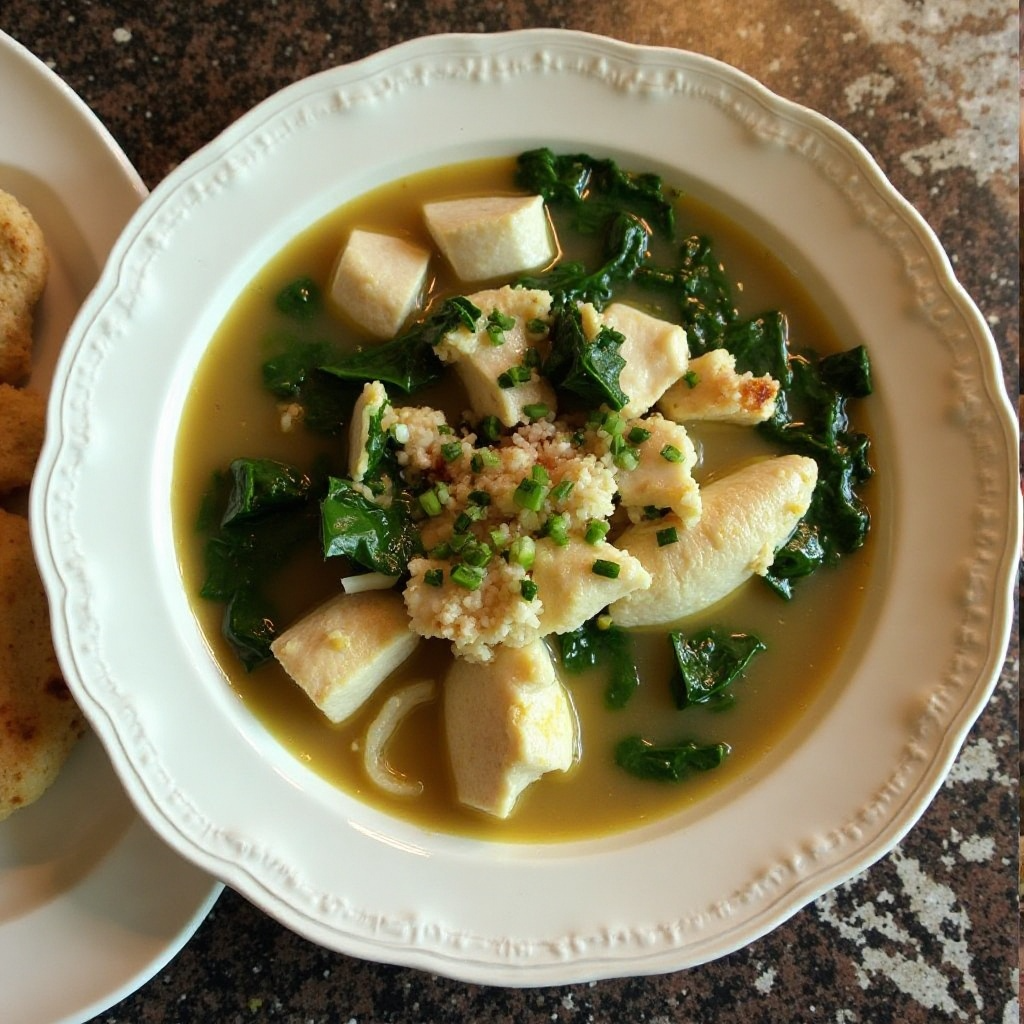 El casabe es un pan plano tradicional de las islas del Pacífico Sur, y en Choiseul Bay de Las Islas Salomón, se disfruta como parte de una rica sopa de pescado. Esta receta combina ingredientes frescos de la región con el casabe, creando un plato reconfortante y lleno de sabor. Es perfecto para disfrutar en días lluviosos o simplemente cuando buscas una comida ligera pero satisfactoria.