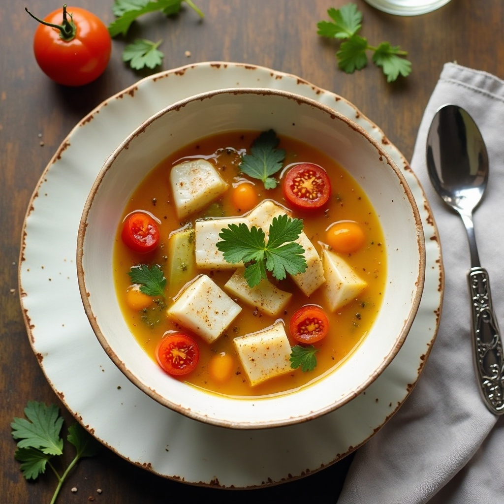 Esta sopa es baja en grasa y alta en nutrientes, gracias a los ingredientes frescos y naturales. El pescado proporciona proteínas esenciales, mientras que el caldo de verduras es una fuente saludable de vitaminas y minerales. Al elegir un vino de calidad, se asegurará de obtener beneficios adicionales del consumo moderado de alcohol, como algunos antioxidantes.