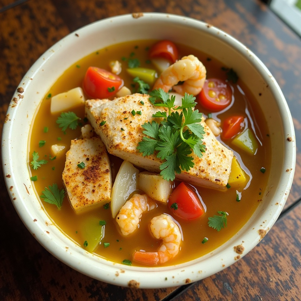 El Dangriga es un pequeño pueblo de la costa sur de Belice, conocido por su rica tradición culinaria que se ha visto influenciada por las culturas tapou y garífuna. Aquí te presentamos una versión moderna de sopa de pescado con toques distintivos del estilo tapou, ideal para disfrutar de la fusión gastronómica beliceña.