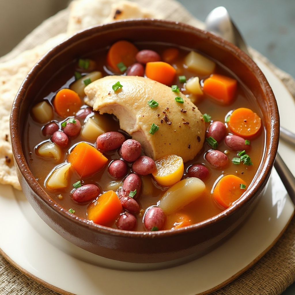 Esta sopa es una fuente de proteínas provenientes del pollo y ofrece hidratos de carbono gracias a las patatas y los frijoles. Además, contiene vitaminas A y C de las zanahorias, lo que la convierte en una opción saludable para el almuerzo o cena. Si prefieres una versión baja en grasa, puedes usar caldo de pollo light o agua, ajustando los tiempos de cocción si es necesario.