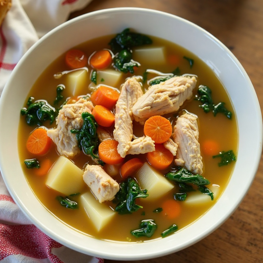- Una vez el pollo esté cocido, retíralo de la olla y déjalo reposar. Una vez frío, corta en rodajas delgadas. Añade las rodajas de pollo a la sopa de pollo caliente.