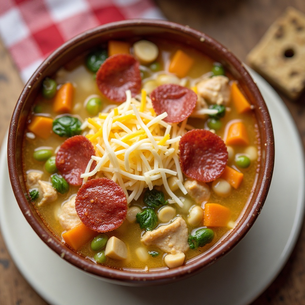 Receta de Sopa de Pollo con Topping de Pepperoni y Queso para Altoona, Pennsylvania