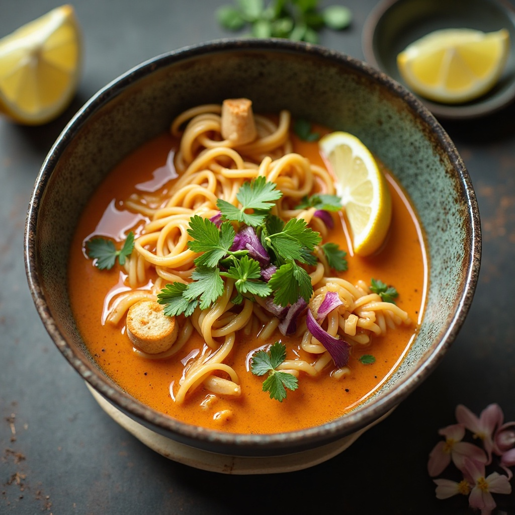El Chiang Mai, en Tailandia, es conocida por su rica gastronomía que incluye platos como el Khanom Jeen Nam Ngiaw. Inspirada en esta región, esta receta de Sopa de Pollo Tailandesa con Không Jeen combina sabores tradicionales tailandeses para crear un plato reconfortante y lleno de sabor.