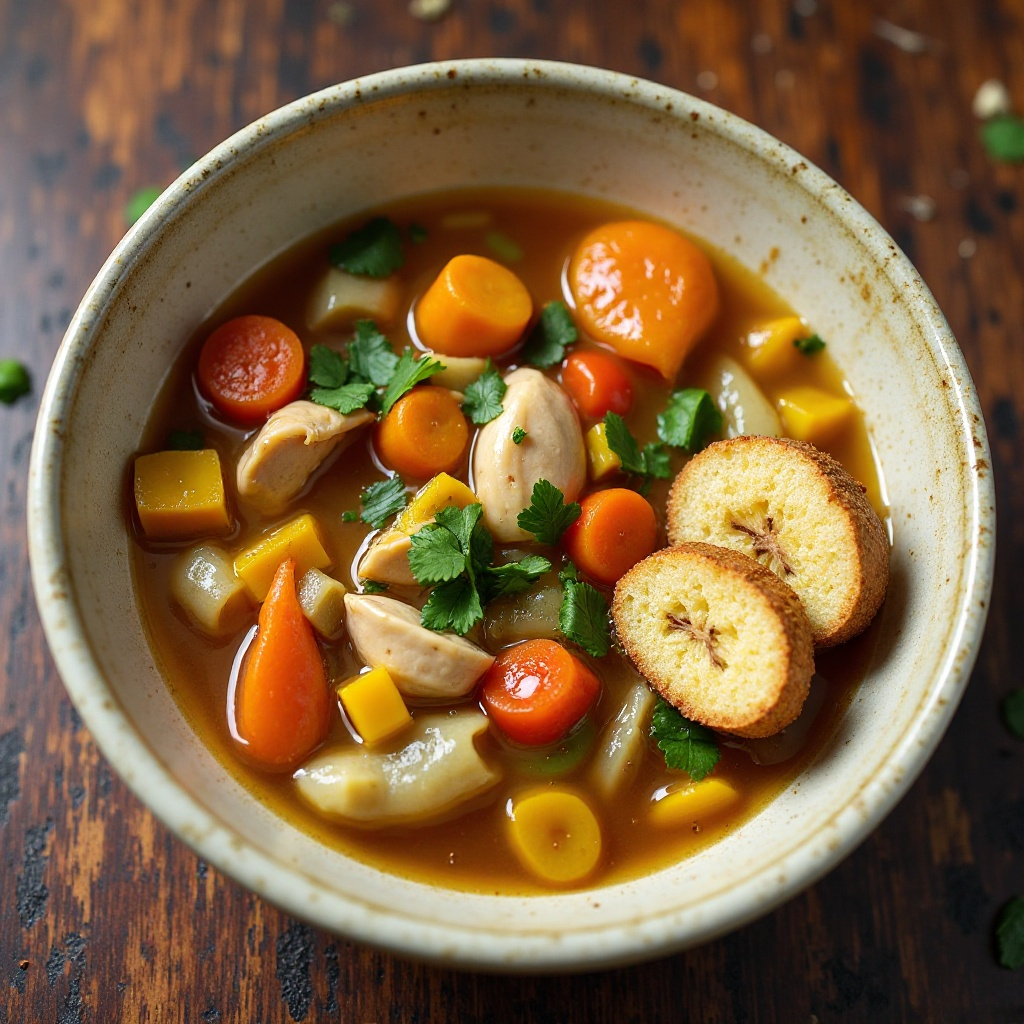 Receta de Sopa de Pollo y Verduras con Tostones de Plátano: Inspirada en Guangzhou, China
