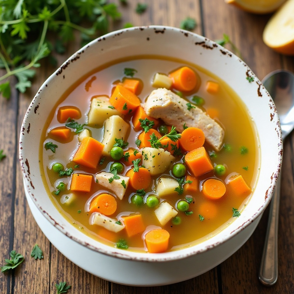 La sopa de pollo es una excelente fuente de proteínas y contiene vitaminas y minerales esenciales. La elección de ingredientes frescos de granja, como las verduras locales, puede aumentar sus beneficios nutricionales al incluir antioxidantes y fibra. Para ajustar la dieta, se pueden reducir las porciones de grasa al evitar la mantequilla o optar por una alternativa más ligera. Además, usar caldo de pollo casero reduce el sodio en comparación con los caldos procesados.
