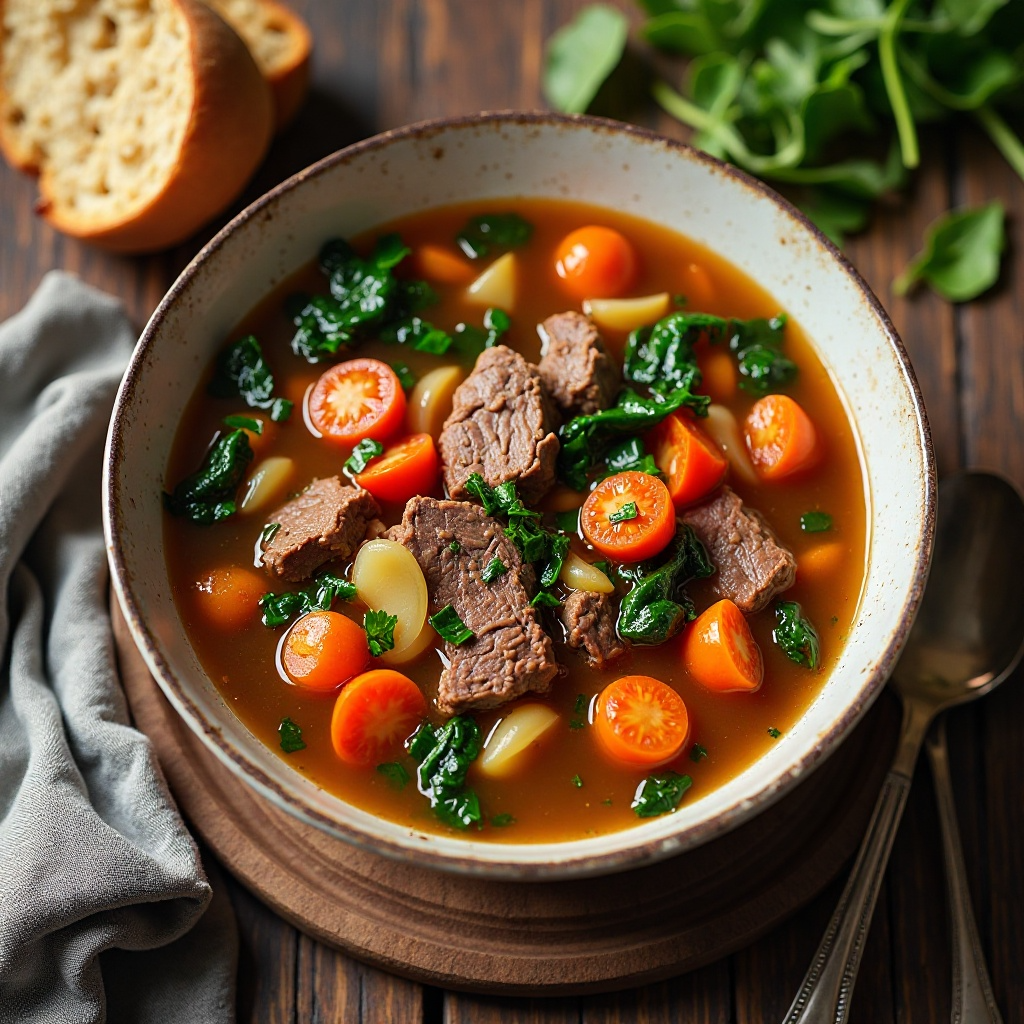 La sopa de res es una opción nutritiva que proporciona proteínas magras. El uso de hierbas secas locales añade un toque aromático y antioxidantes. Es importante ajustar la cantidad de sal según las preferencias personales o necesidades dietéticas. Para una versión más ligera, considera reducir el tamaño de las porciones de carne o usar caldo de verduras en lugar de uno de res.