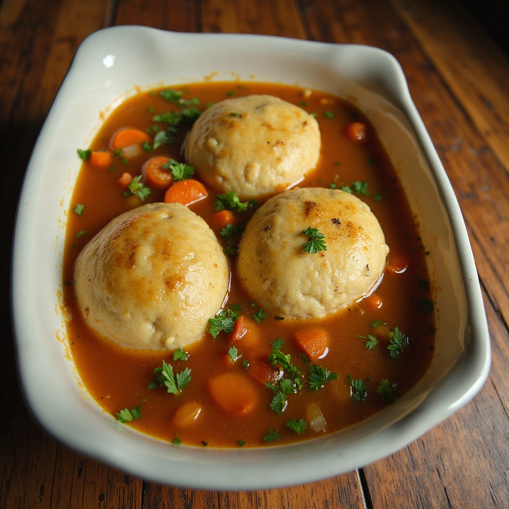 - Coloca la masa de Knephla en un molde para hornear (debe tener forma de fuente) y vierte el caldo con las verduras encima. Cocina al horno a 180°C durante unos 25-30 minutos, hasta que la masa esté cocida y haya absorbido parte del líquido.