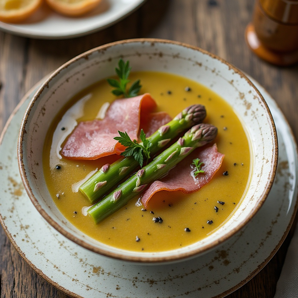 Receta de Sopa de Trufas de Aragón con Espárragos y Jamón de Jamón