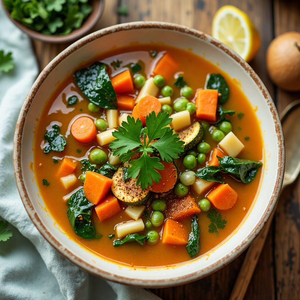 Esta sopa es rica en vitaminas y antioxidantes gracias a las verduras frescas utilizadas. La opción por el jugo de limón en lugar de vino ayuda a mantener la receta saludable, ofreciendo un toque ácido similar al aroma del vino sin los posibles efectos secundarios de las bebidas alcohólicas.
