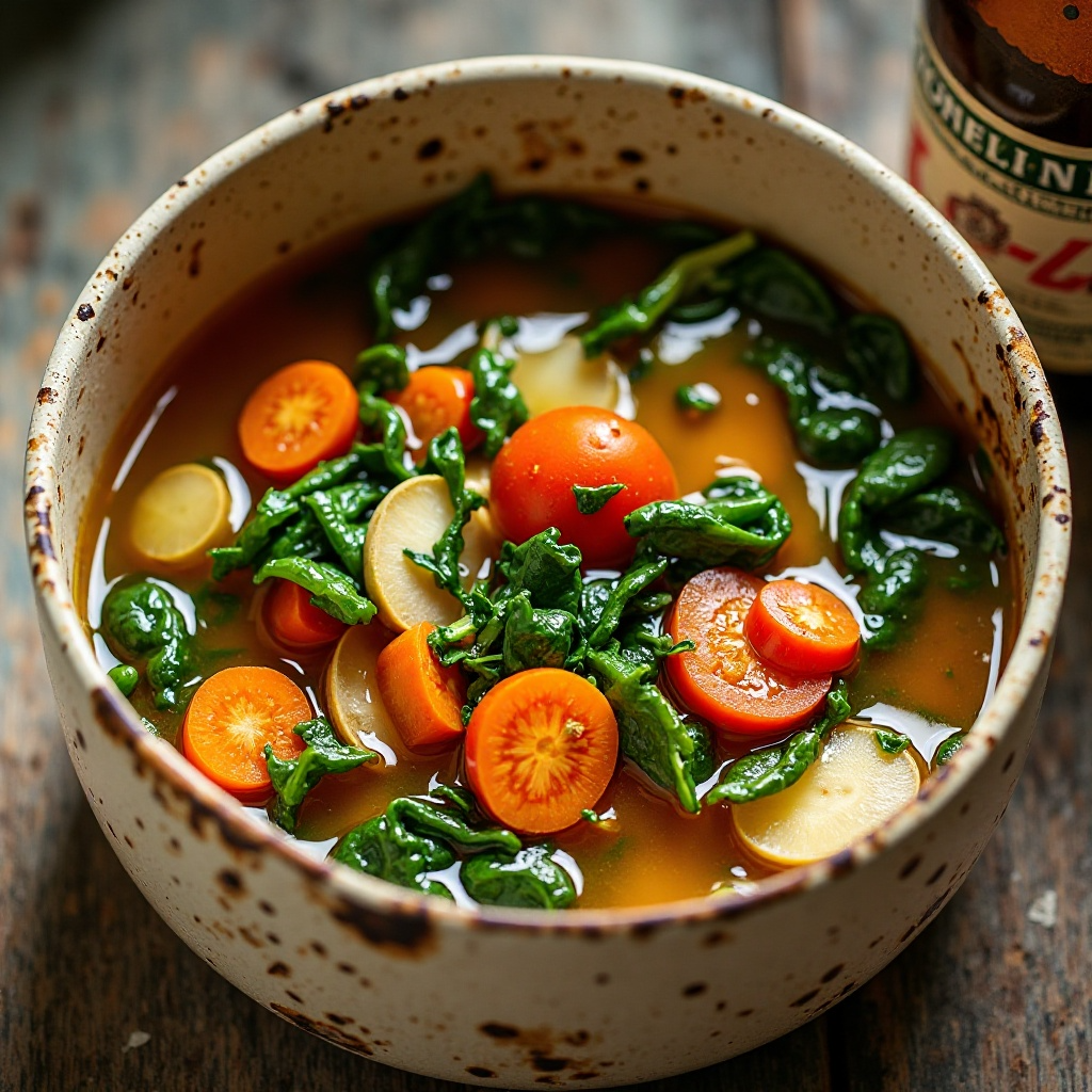 La inclusión de cerveza artesanal en platos tradicionales es un reflejo del crecimiento de la cultura cervecera en Estados Unidos, donde se valora tanto la tradición como la innovación. «Greenfield» es una marca que destaca por su variedad y compromiso con los ingredientes locales, lo que hace que sus variedades sean ideales para innovar en recetas caseras. Esta receta fusiona la rica tradición de cocinar con caldos y verduras con un toque moderno y distintivo a través de la cerveza artesanal.