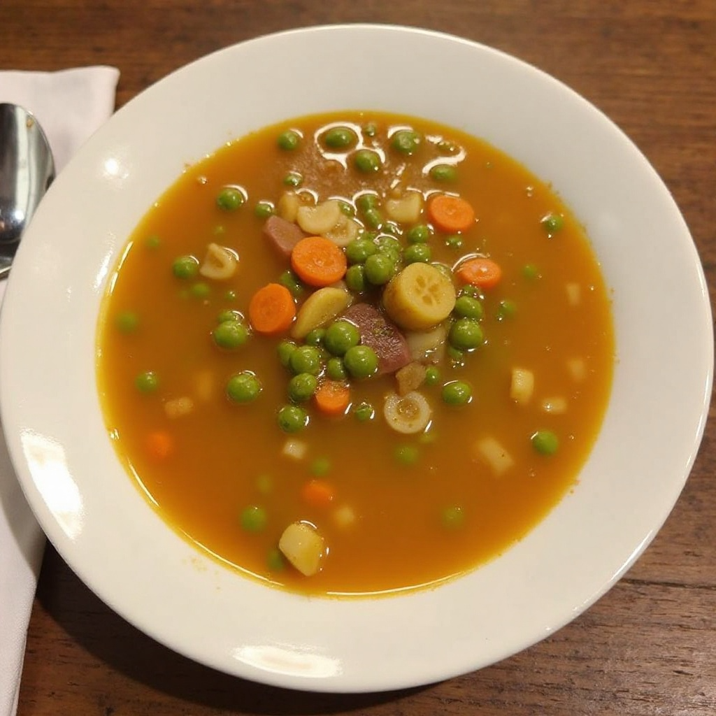 Esta sopa es rica en vitaminas y minerales gracias a las verduras utilizadas. Los pimientos de Georgia aportan vitamina C, mientras que las zanahorias y las judías verdes ofrecen fibra y antioxidantes. Si prefieres una versión sin guisantes para reducir el contenido calórico, puedes prescindir de ellos o sustituirlos por otras verduras preferidas.