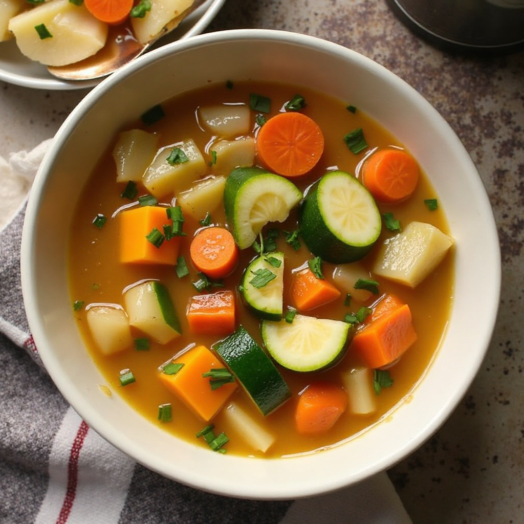 Esta sopa es rica en vitaminas y minerales, gracias a sus abundantes verduras. El vino local añade un toque único sin agregar excesivamente calorías. Para una versión aún más saludable, puedes optar por una variedad de vinos sin alcohol o incluso un caldo de verduras.
