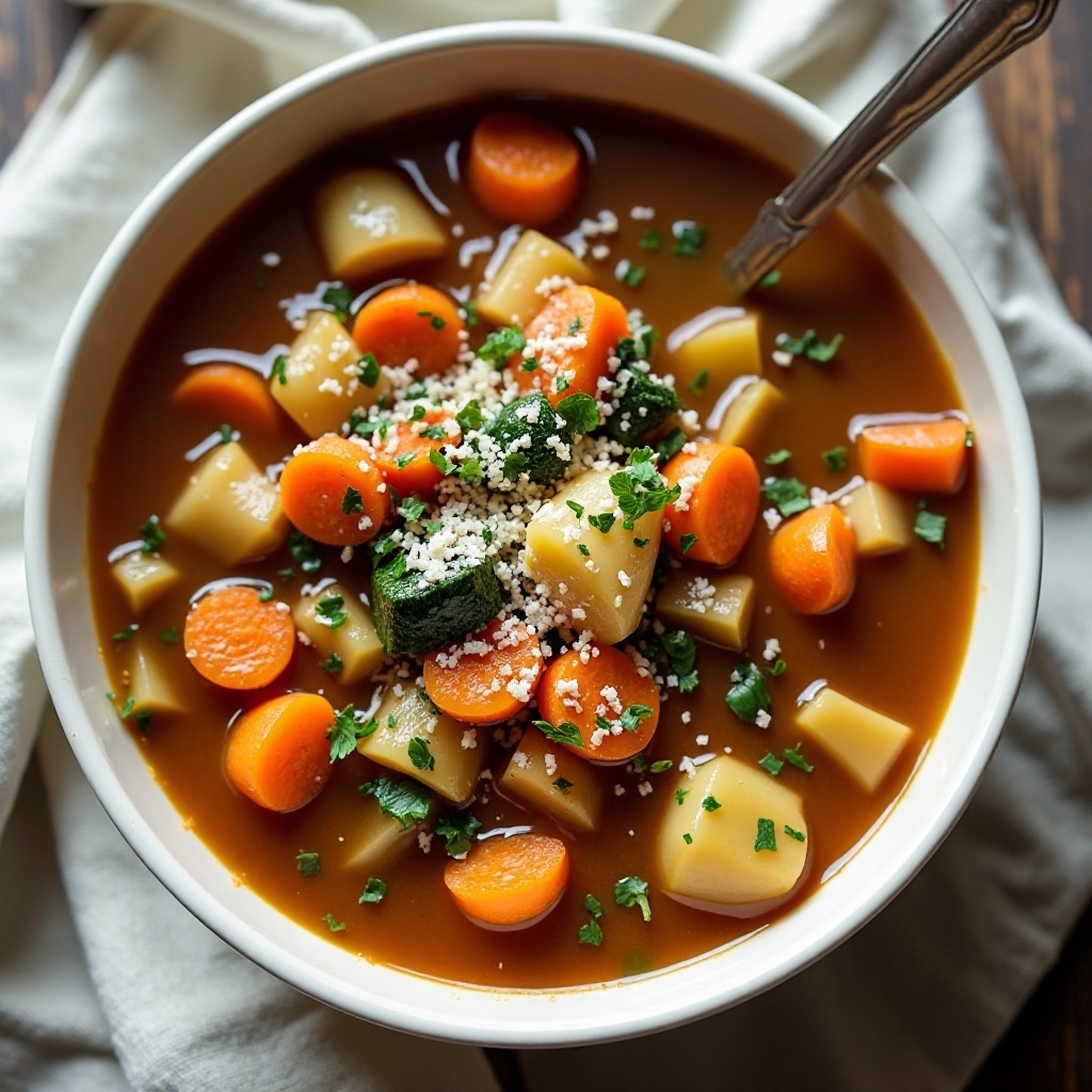 - Sirve la sopa caliente en platos, espolvoreando queso parmesano rallado sobre cada porción para añadir un toque adicional de sabor.