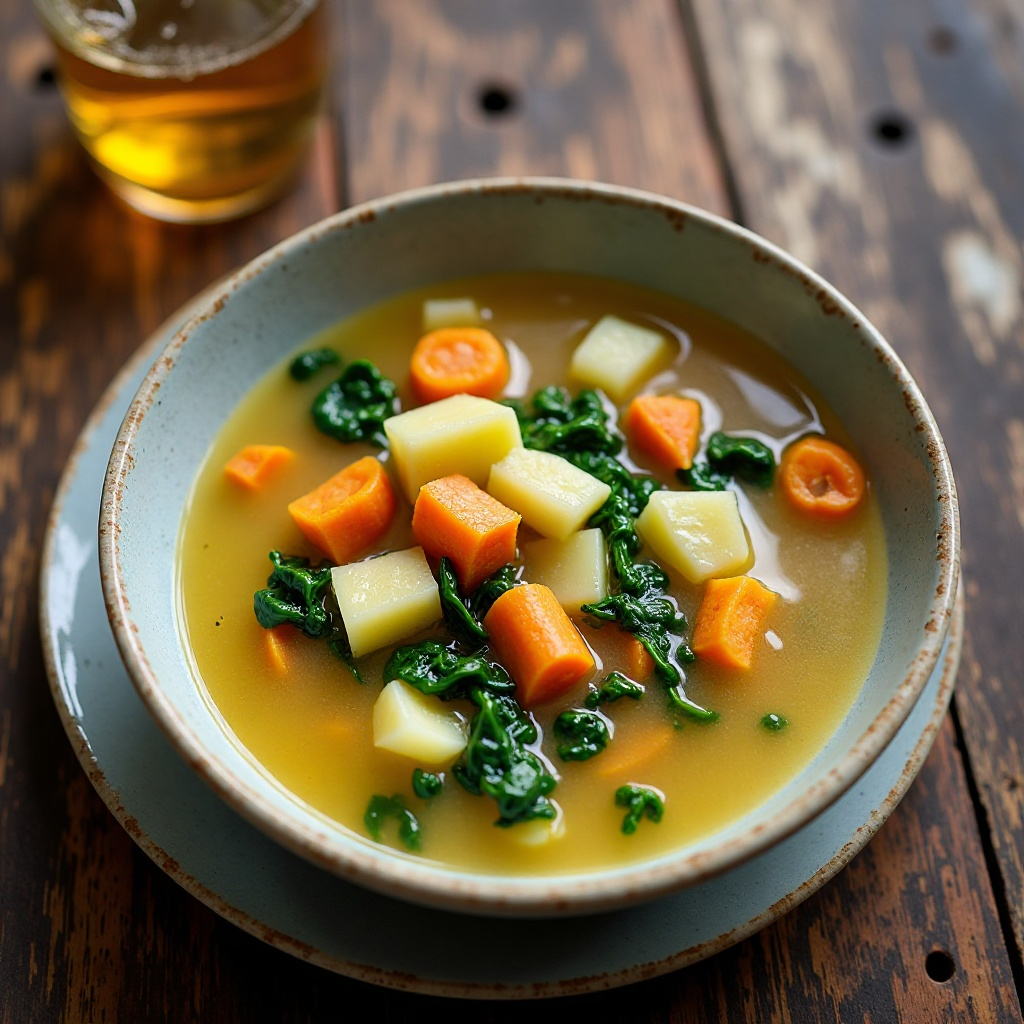 Esta receta es baja en grasas y rica en fibra gracias a las verduras utilizadas, especialmente las espinacas y los nabos. El Whiskey, aunque contiene alcohol, se agrega al final para minimizar su contenido en la sopa, convirtiéndolo más bien en un condimento que aporta un sabor distintivo.