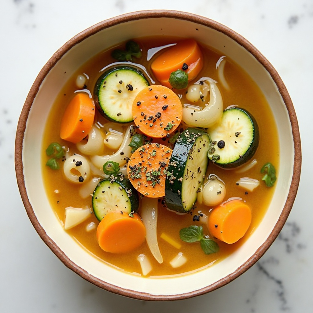 Esta sopa es baja en grasas y alta en vitaminas y minerales provenientes de las verduras. El queso de granja contribuye con proteínas y calcio, esenciales para la salud ósea. Para una versión más ligera, puedes usar caldo de verduras en lugar de uno animal o simplemente reducirlo a la mitad.