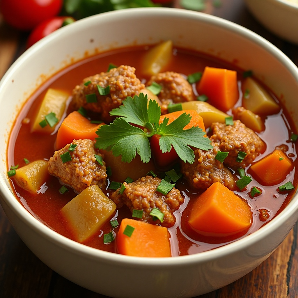 Este plato es rico en proteínas y contiene vegetales que proporcionan fibra y vitaminas esenciales. La elección del pollo en lugar de carne de ternera puede hacer que la sopa sea más ligera, aunque sigue siendo un alimento satisfactorio. Asegúrate de que el pollo esté bien cocido para garantizar la seguridad alimentaria.