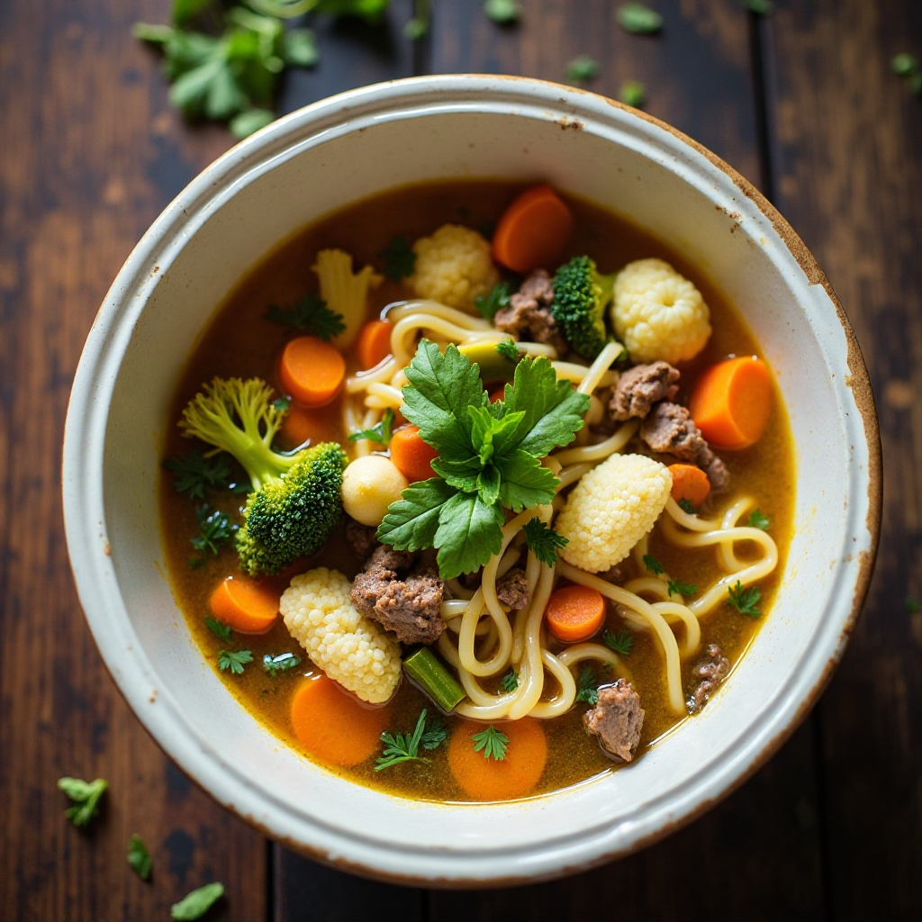 El Thukpa es una opción saludable debido a sus proteínas de carne magra y fideos integrales. Los vegetales aportan fibra, mientras que el Gundruk ofrece beneficios de antioxidantes y probióticos naturales debido a su fermentación. Asegúrate de usar caldo de verduras para reducir el contenido de sodio si es una preocupación.