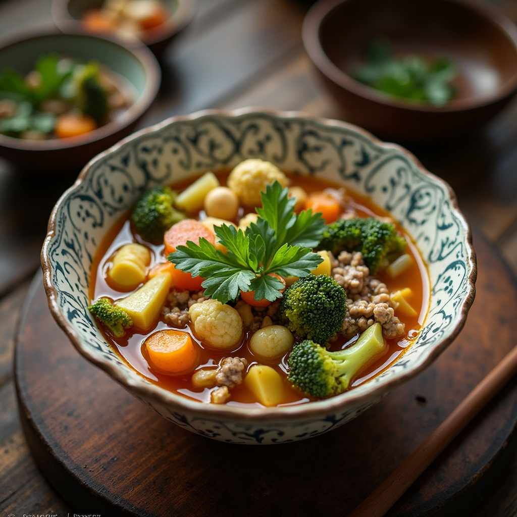 El uso del jugo concentrado de Baijiu en esta receta se debe hacer con moderación debido a su alto contenido de alcohol. Se recomienda disfrutar de esta sopa en pequeñas cantidades y como parte de un menú equilibrado. Los vegetales frescos aportan vitaminas y antioxidantes, mientras que la carne proporciona proteínas. La salsa de soja baja en sal es una opción más saludable para quienes buscan reducir el sodio en su dieta.