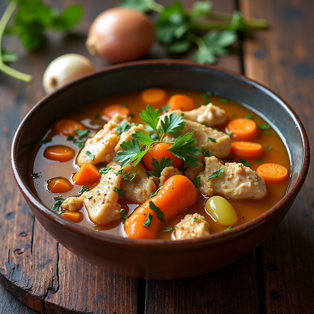Este plato ofrece proteínas y vitaminas presentes en el pollo y las verduras. La «Cerveza» de Panda Butanesa agrega un sabor interesante sin ingredientes nocivos, haciendo que la sopa sea una opción saludable y deliciosa.