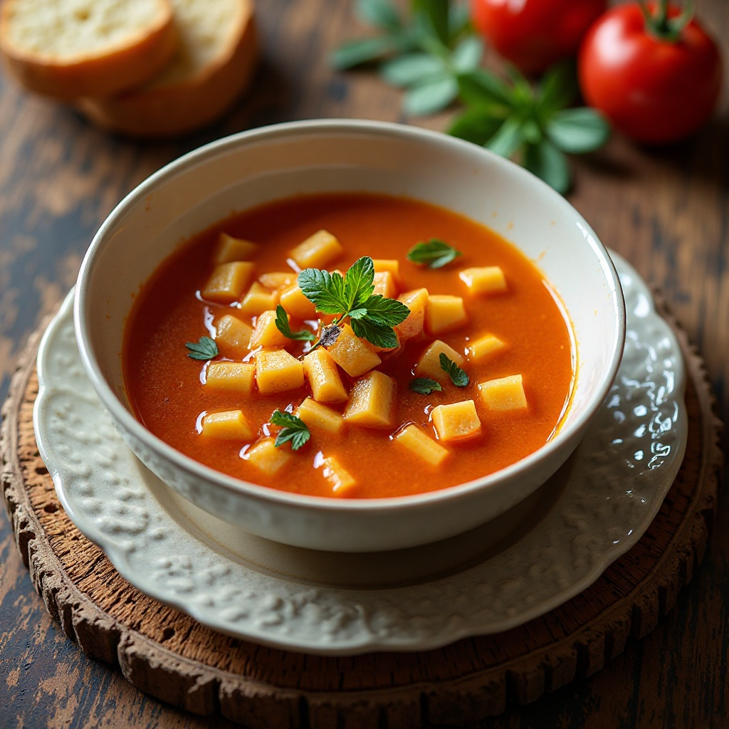 El queso Babrujsk es un queso tradicional bielorruso, conocido por su textura firme y sabor salado. Este plato, el soplón, es una especialidad en Babrujsk y es perfecto para disfrutar de este queso de manera única. Se trata de una sopa con un toque picante que realza los sabores del queso, ideal para un almuerzo reconfortante.