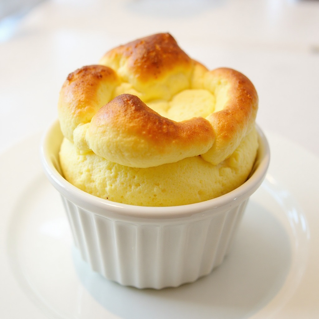 - Hornea por aproximadamente 25 minutos o hasta que el soufflé esté dorado y los bordes estén firmes. Retira del horno y deja reposar durante unos minutos antes de servir, permitiendo que pierda algo de temperatura y se forme su característico pico.