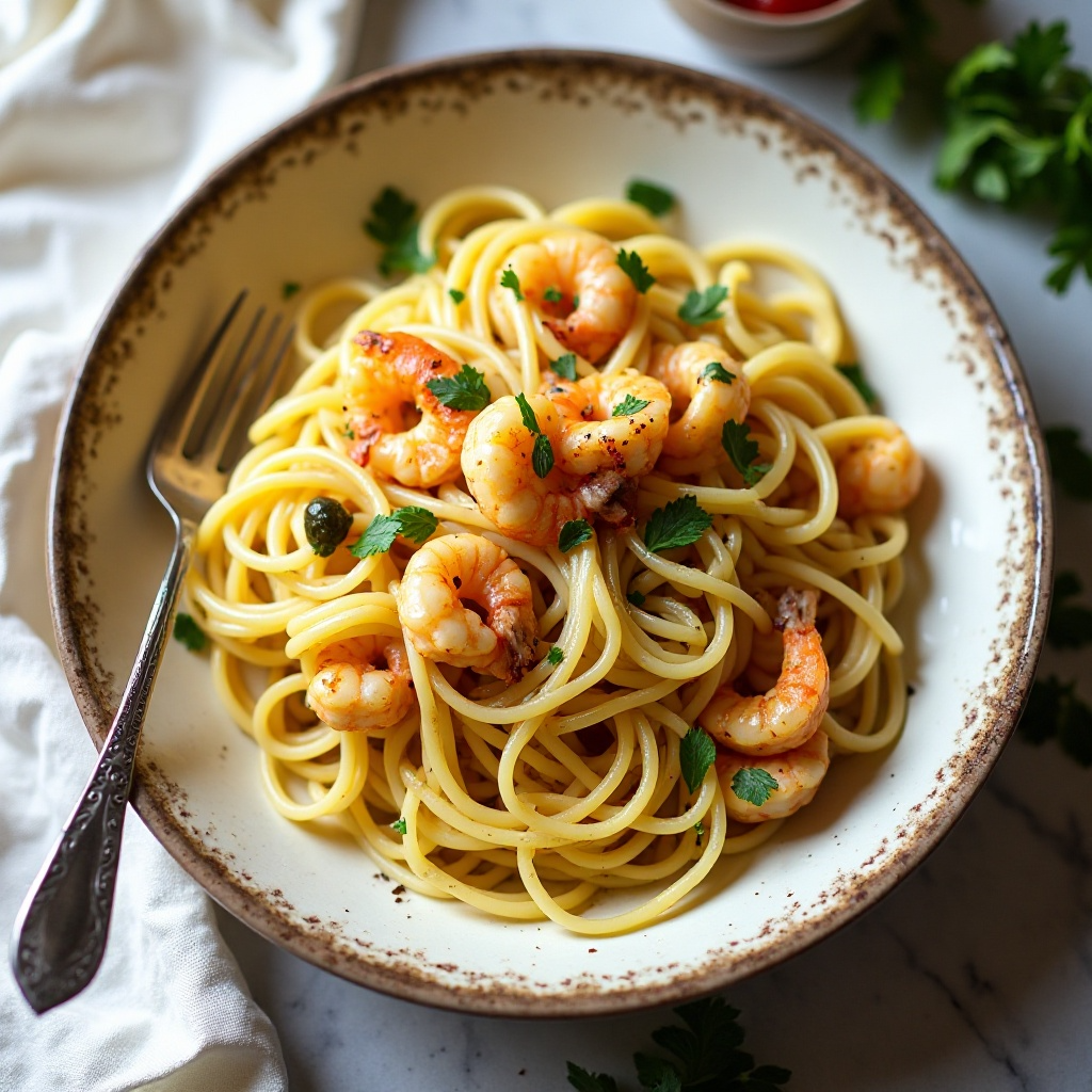 7. Sirve inmediatamente, disfrutando del sabor único del spaghetti con la frescura de los camarones.