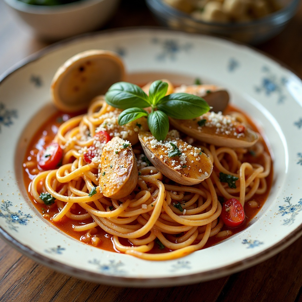 Este plato es rico en proteínas y antioxidantes gracias a los pescados y el tomate. Las almejas aportan minerales esenciales como el calcio y el hierro. Para un plato más ligero, podrías optar por utilizar menos aceite o elegir una variedad de pasta integral. Asegúrate de que todos los productos del mar sean frescos para mantener la calidad y el sabor.
