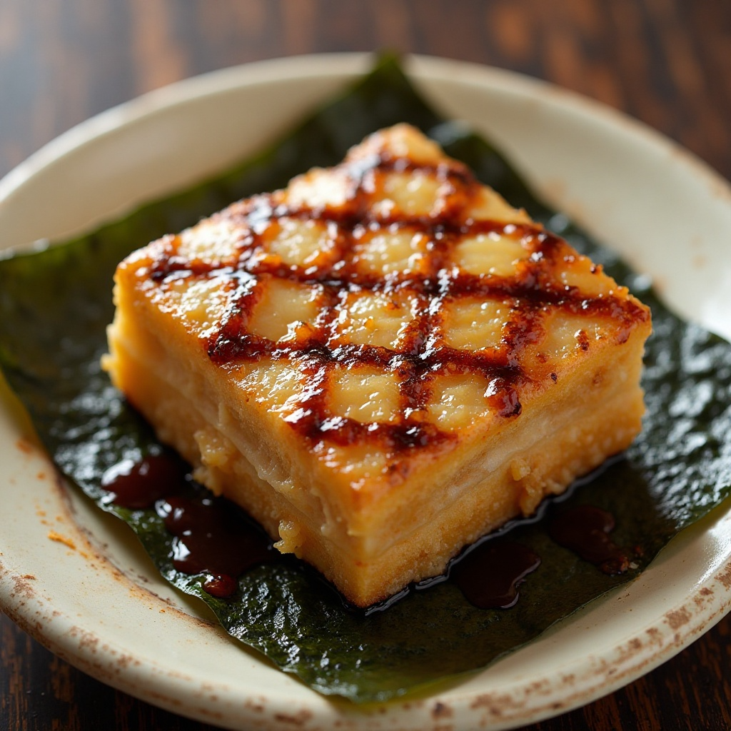 - Una vez cocinado, coloca el Spam sobre una hoja de nori. Espolvorea generosamente con sal y rocía con la salsa teriyaki. Cubre el Spam con el almíbar hecho anteriormente para darle dulzor.