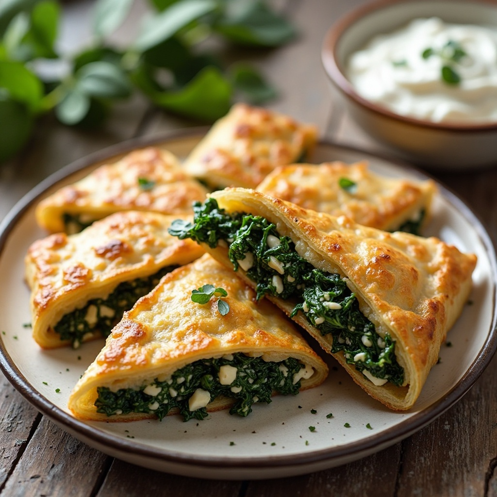 Spanakopita es un plato tradicional griego que consiste en hojas de pastel de espinacas y queso feta envueltas en capas de masa filo. Añadiendo una salsa de tzatziki, comúnmente disfrutada en Tesalia, creamos una versión refrescante y sabrosa que deleitará a cualquier paladar. Esta receta es perfecta para aquellos que buscan una comida ligera pero repleta de sabor.