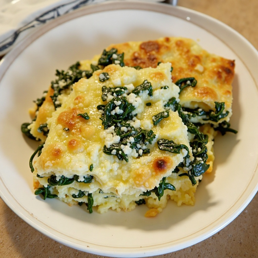 Esta receta es baja en grasas saturadas y rica en nutrientes gracias a las espinacas, que son una excelente fuente de fibra, calcio y vitaminas A y C. El queso feta agrega un sabor único y saludable, proporcionando proteínas y minerales esenciales. Si deseas reducir el contenido de grasa, puedes utilizar menos galinias o reemplazar parte del queso feta con queso ricotta.