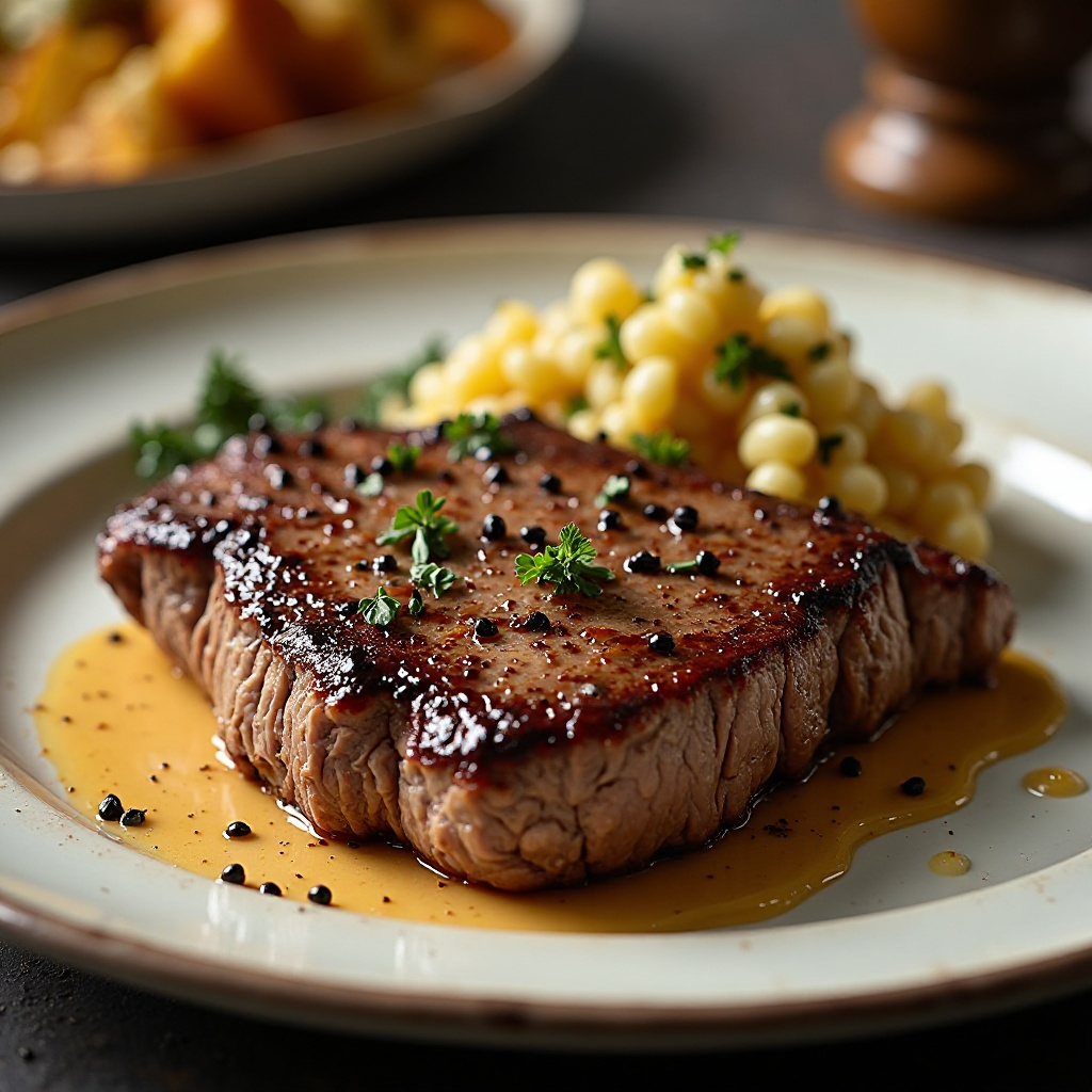 Greeley, conocida por su rica tradición ganadera, ofrece un entorno perfecto para disfrutar de cortes de carne de alta calidad. Este Steak au Poivre es una receta clásica francesa que se ha adaptado para resaltar los sabores intensos y jugosos del ganado local. Perfecto para ocasiones especiales o simplemente una noche acogedora, este plato es una celebración de la carne de res y los condimentos.