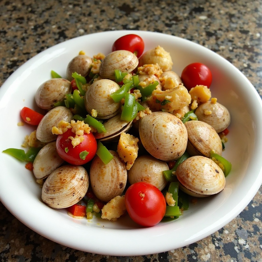 - Agrega los clams limpios al sofrito. Cocina a fuego medio por unos 5-7 minutos o hasta que los clams se abran.