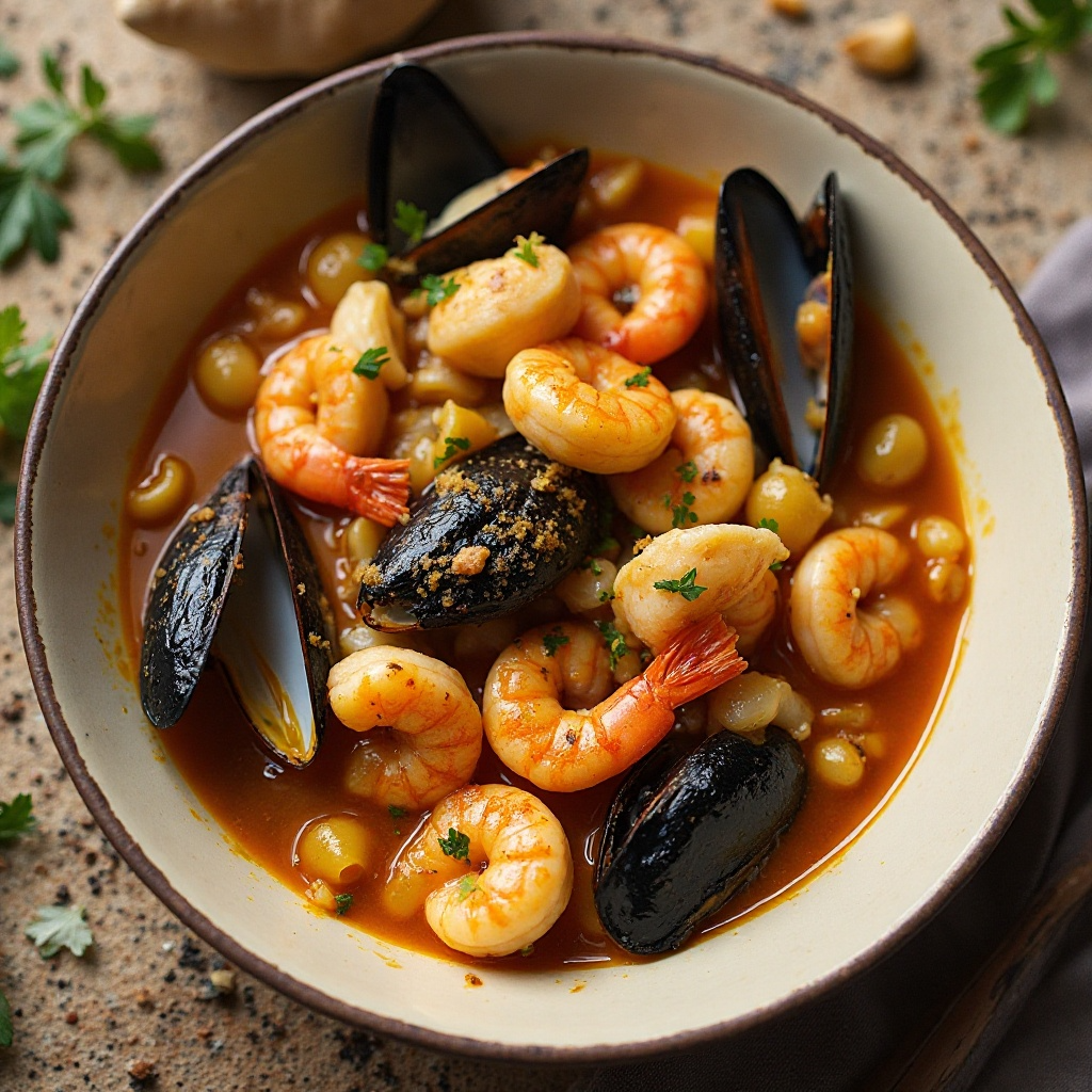 El Stew de Mariscos es rico en proteínas de alta calidad y contiene una variedad de vitaminas y minerales esenciales. Sin embargo, es importante tener en cuenta la cantidad de grasas saturadas que provienen del marisco. Para una versión más saludable, opta por mariscos más bajos en grasa, como camarones o mejillones, y considera reducir el aceite utilizado en la preparación.