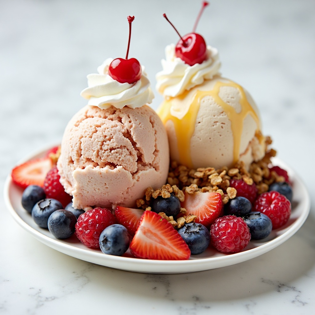 El Graeter’s Ice Cream es conocido por su calidad, hecho con ingredientes naturales. La adición de frutas del bosque ofrece vitaminas y antioxidantes. La granola orgánica, al ser sin azúcar añadida, equilibra el dulzor del helado. Para una versión más ligera, considera reducir la cantidad de crema batida o simplemente disfrutarla sin ella.