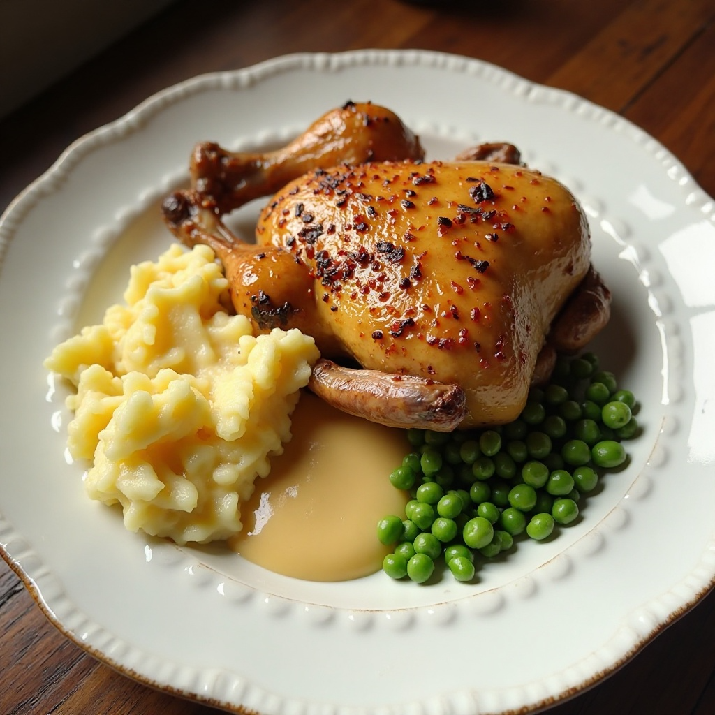 Receta de Sunday Roast British Style: Pollo a la Yorkshire con Guisantes y Puré de Papas