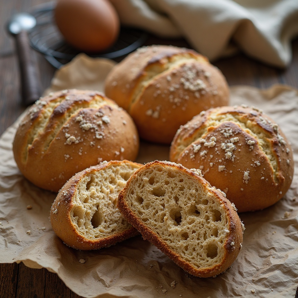 El centeno utilizado en esta receta es rico en fibra y antioxidantes, lo cual contribuye a un sistema digestivo saludable. El panecillo es una opción ligera para acompañar otros platos o simplemente disfrutar como snack. Reduce la sal si prefieres una versión menos salada.