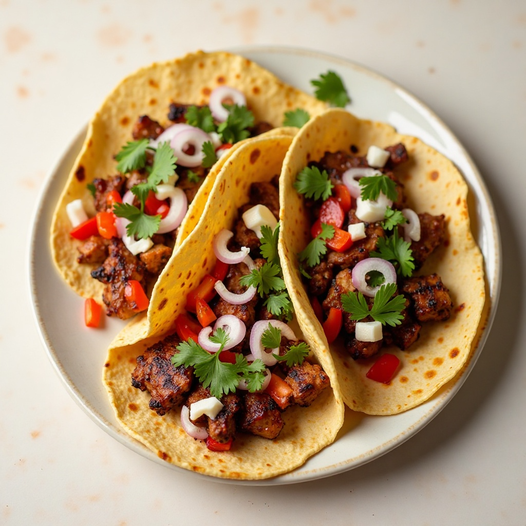 Los tacos al pastor son un clásico de la gastronomía mexicana, popularizados por el uso de carne ahumada y asada en un trompo vertical. Esta versión especial utiliza carne en jugo de tequila para añadir profundidad de sabor y una ligera nota afrutada. Los tacos se acompañan con tortillas recién hechas, cebolla picada, cilantro fresco y salsa de tomate para realzar la experiencia culinaria.