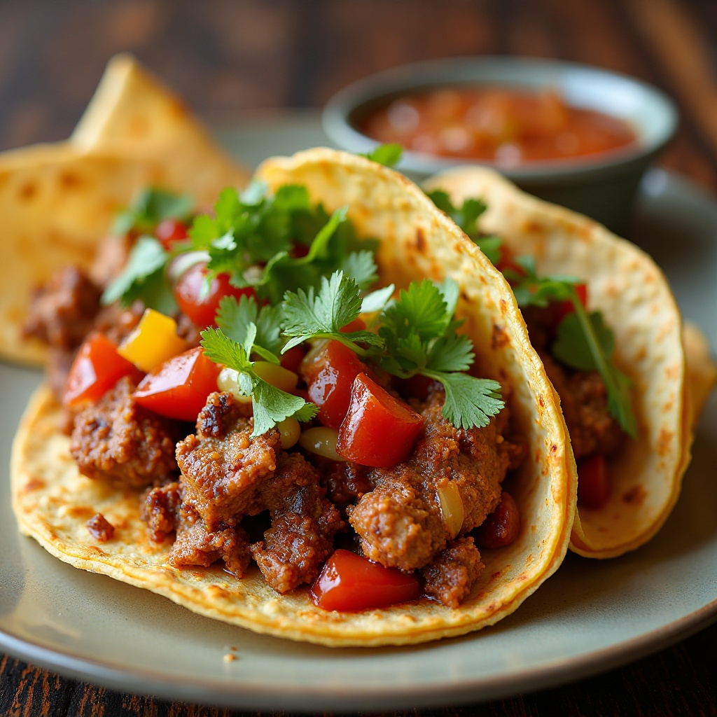 7. Sirve la carne en cada tortilla, añade los pimientos y cilantro fresco. Sirve con salsa picante a gusto.