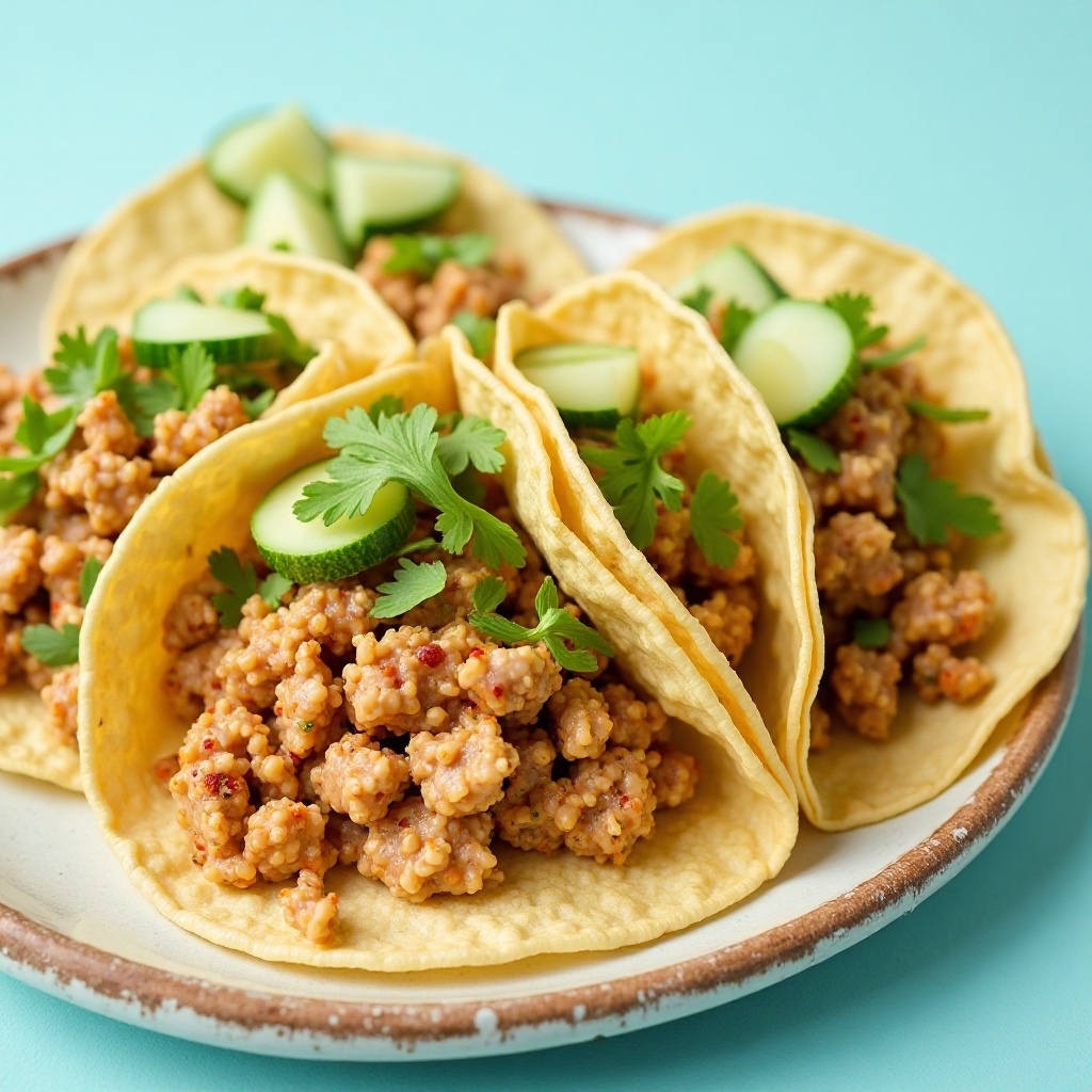4. Si lo deseas, añade lechuga picada y pepino cortado en cubos pequeños por encima del atún en cada taco.